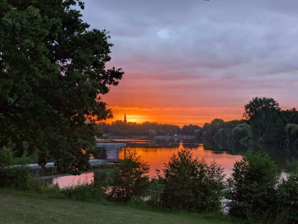 Dadurch, dass ich das einen Monat vollständig durchgezogen habe, sind schon Gewohnheiten entstanden. Grade der Mittagspaziergang mit Abwesenheit vom Schreibtisch hat noch einen anderen Effekt: Man ist für Kollegen für „mal kurze Fragen“ nicht greifbar. Und morgens ergeben sich manchmal schöne Sonnenaufgänge: